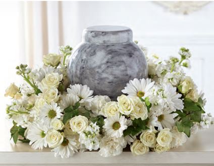 Designed to wrap the urn in a garden of floral beauty each wreath is unique…hand created to focus on the theme selected using the best blooms available. They comes in 3 sizes to create just the right tribute no matter the size of the urn or budget. Please let us know your urn diametor/dimensions, so we can adjust the fit. No two wreaths are ever the same …yours will be as unique as the loved one its is being created for.